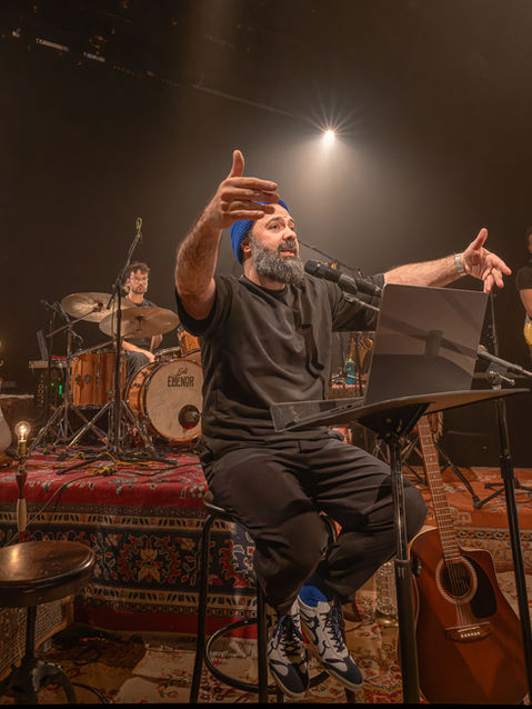 Zamân ou a le même temps qu’on avait est le nouveau saut dans le vide, aussi drôle que poignant, de Mani Soleymanlou qui cette fois s’entoure du groupe de musique Valaire pour créer un cadre intimiste autant que décontracté et entrainer les publics dans l’ambiance feutrée d’un club de jazz. Là où les les confidences naissent et où tout peut être dit sans retenue. Là où une envolée de sax ou solo de batterie peut remplacer les mots. Là où l’on se sent hors du temps et où l’imprévu peut enfin surgir.